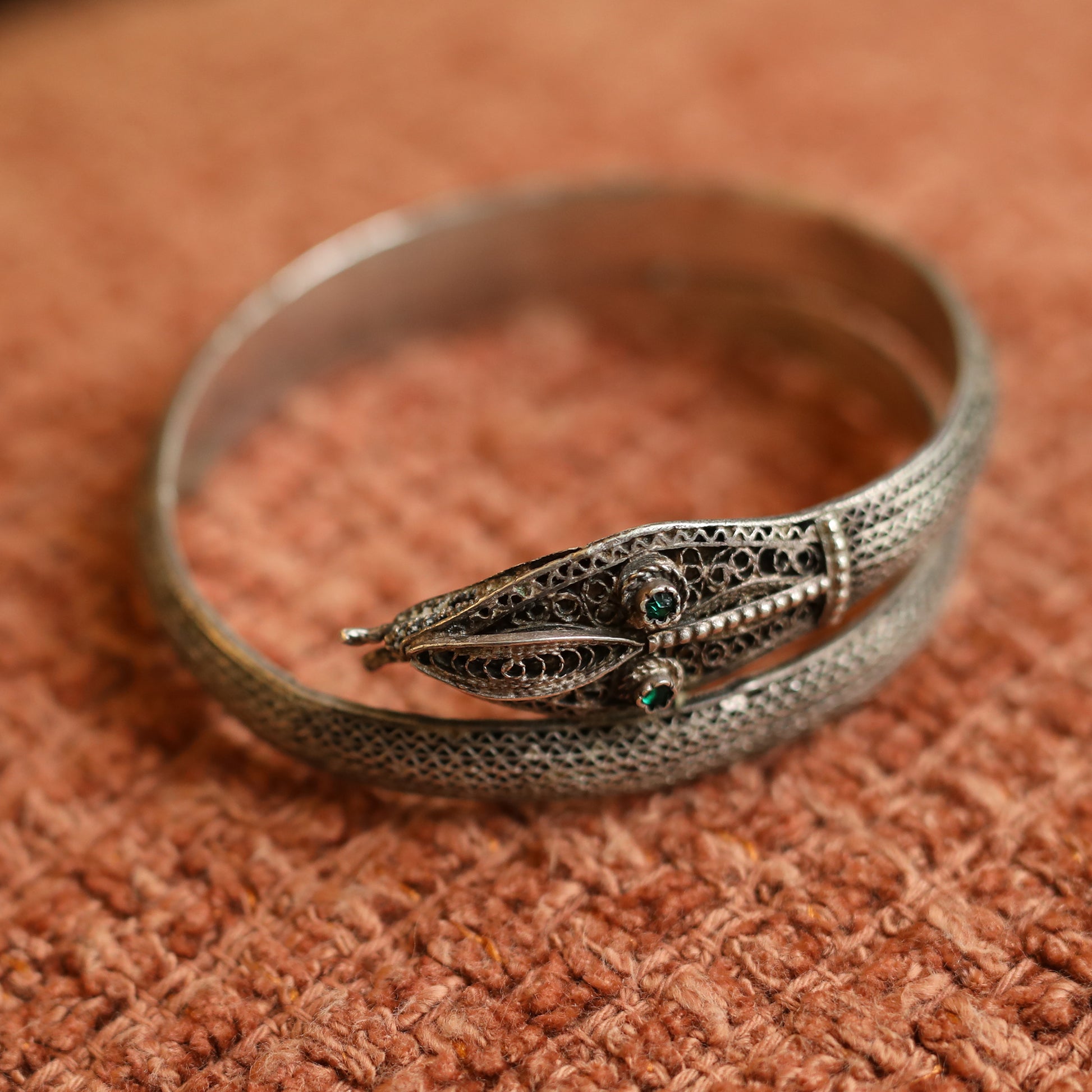 Introducing our exquisite Antique 925 Silver Bracelet, a rare piece crafted approximately a century ago, adorned with mesmerizing green zircons. Imbued with history and elegance, this bracelet is a testament to the timeless allure of antique jewelry.