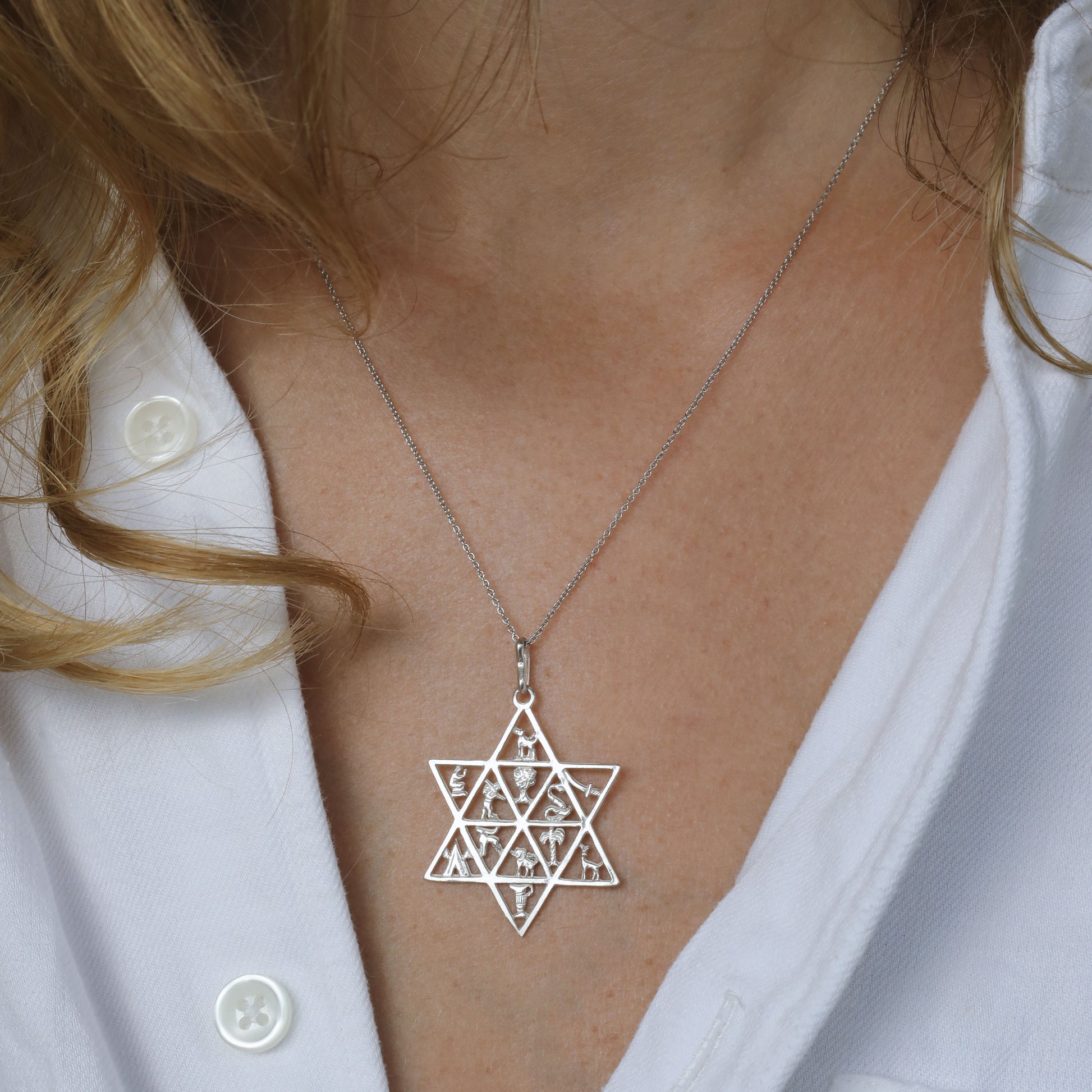 Discover the artistry of heritage with our stunning Star of David Pendant. Symbolizing the 12 tribes with intricate detailing in each section, this pendant is crafted from high-quality 925 Sterling Silver. Embrace the beauty of tradition and elegance in a single piece of jewelry.