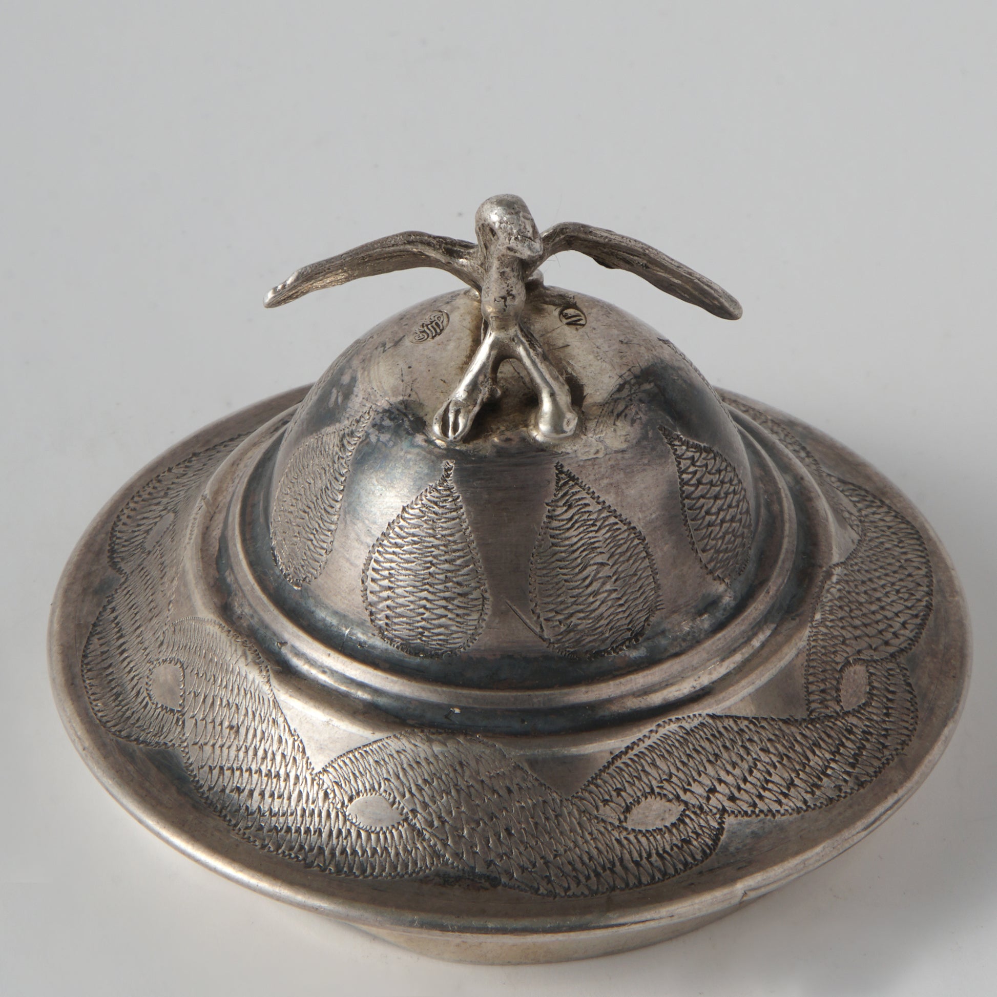 A perfume vessel with a dove of peace made of silver