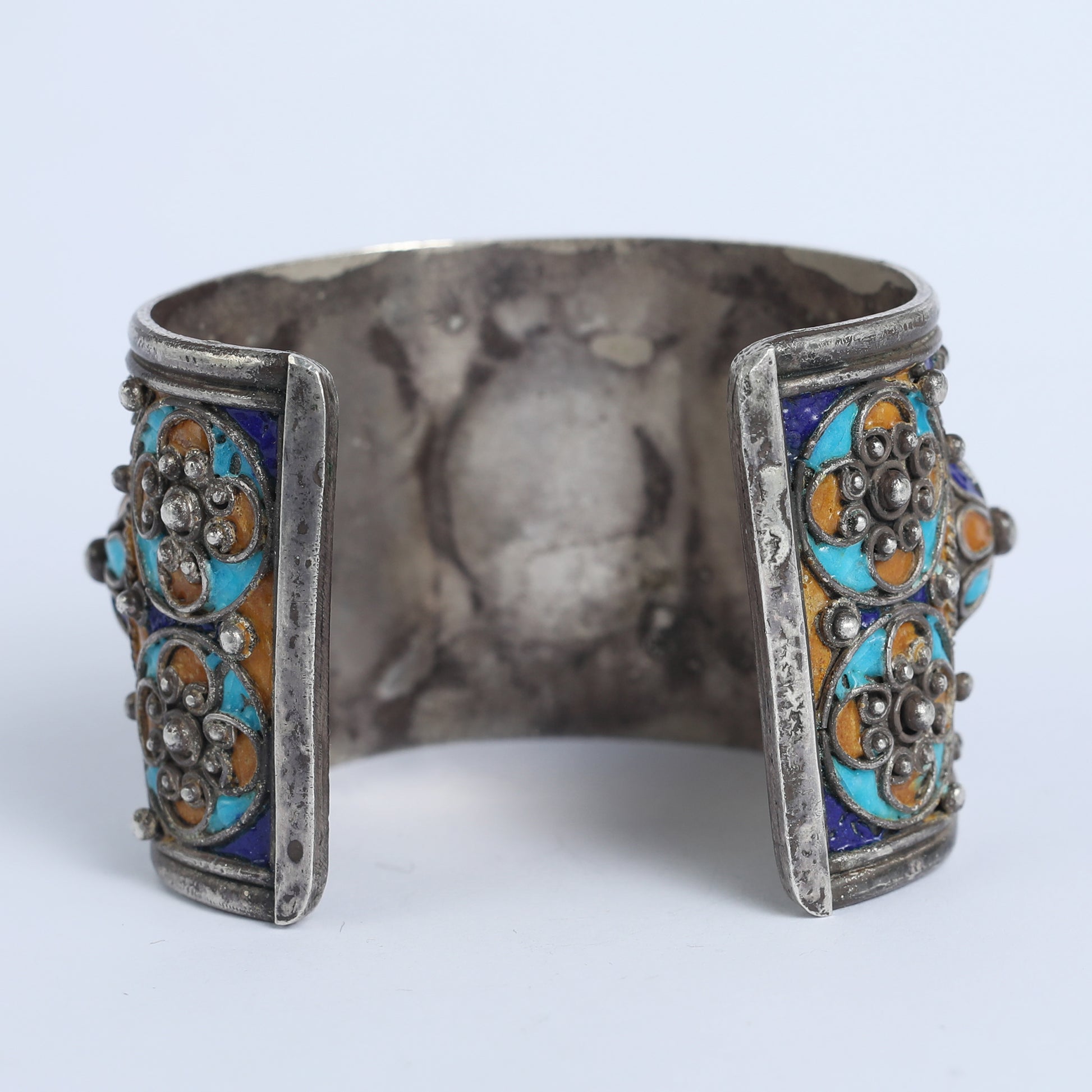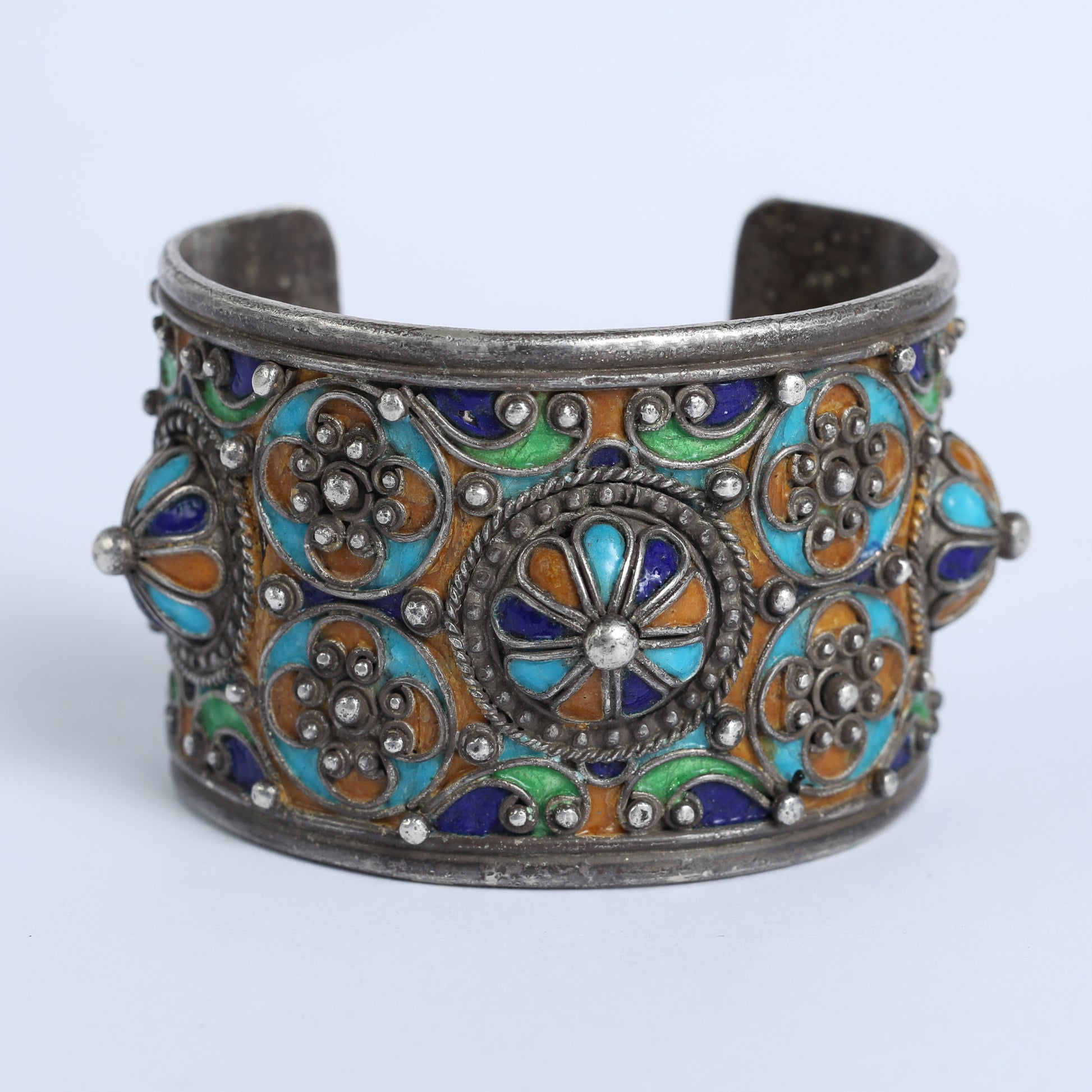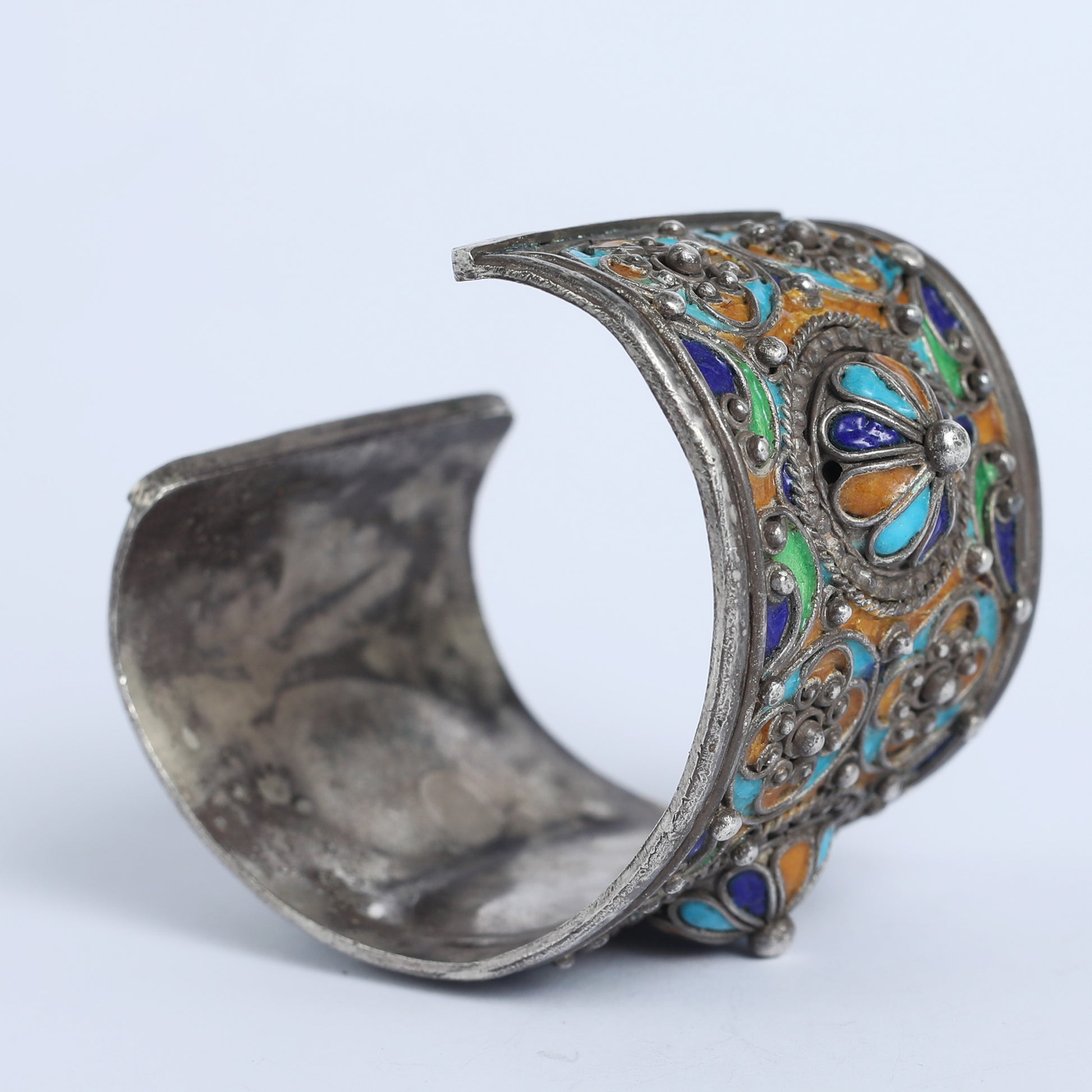 Andalusia, located in southern Spain, is one of the most important regions connecting Europe and Africa. In this cuff bracelet, made of silver and porcelain enamel, the warmth, passion and beauty of the Moor capital is brought to life. The geographical vicinity to Morocco has influenced the design as well. Porcelain enamel is a material made by fusing powdered glass, originating from ancient Egypt, and was known also in India and China.