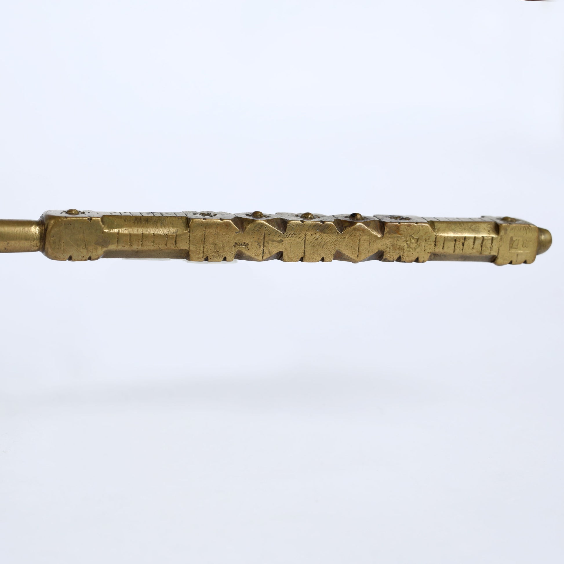 A Yad is used to this day to follow the reading of the Torah in Synagogues around the world. Since the Torah is too holly to touch, the finger at the point is used for indicating the text. Usually, the Yad has a chain linked to it circling the wrist, joining the reader and the written word. This example of a Yad is brought from Morocco, with ornaments engraved in the brass, a unique choice of material for such piece. The design is typical to the Maghreb area- a region in North Africa known for its rich traditions and cultures.