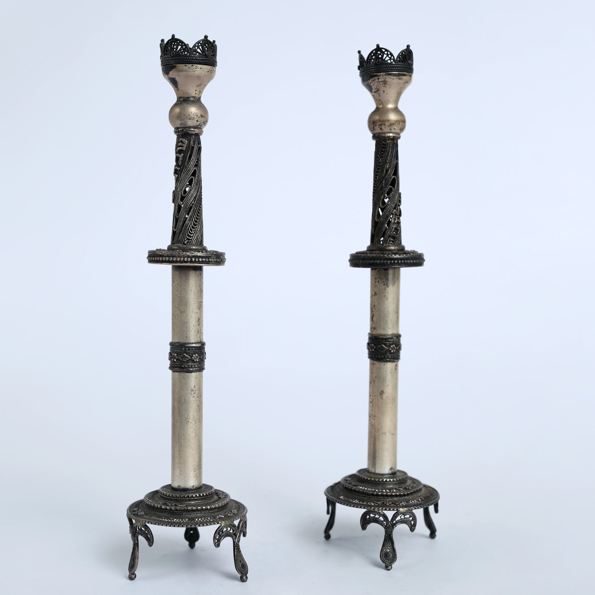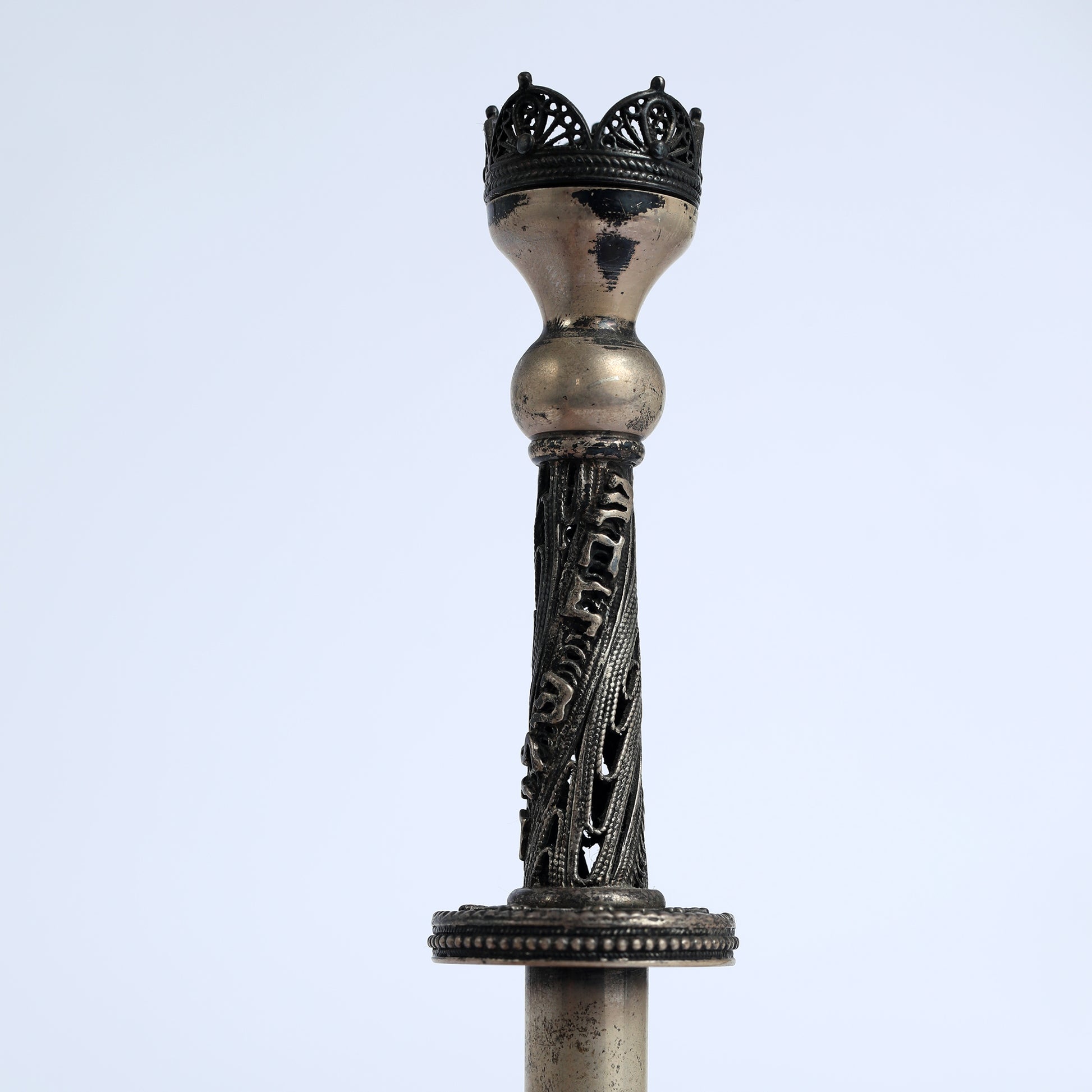 A handmade Shabbat candle holders, made of pure silver. The engraving in Hebrew means "Shabbat Shalom".
