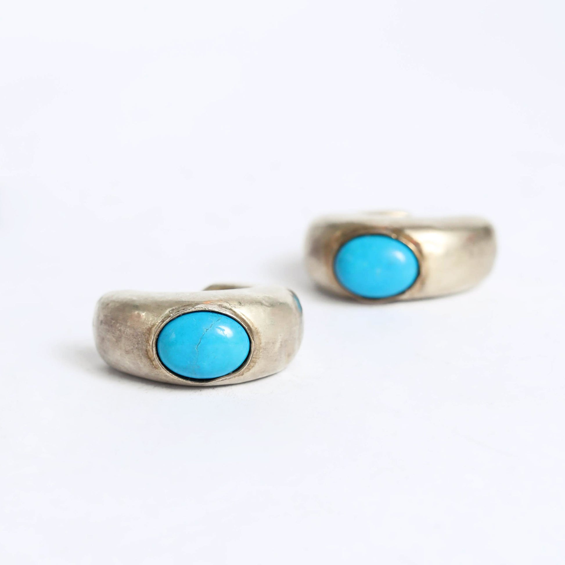 Giant earrings with turquoise gemstone. It is made with the Electroforming technique, where multiple layers of metals are built up and form a surface. The artist controls the formation of the pattern by first painting it with a special conductive paint. Turquoise is considered as the Gemstone of the Heavens, connecting between heaven and earth