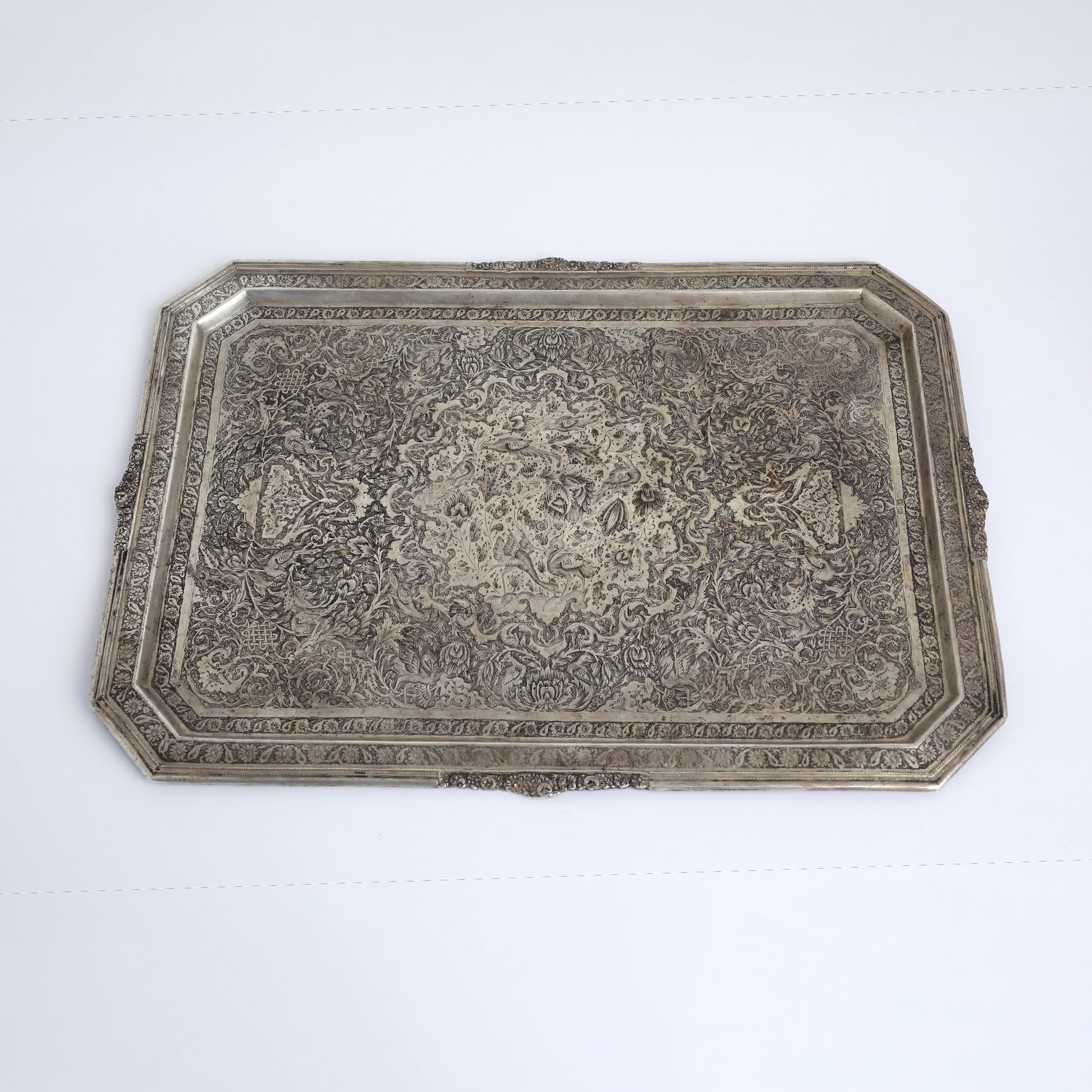 Handcrafted Persian Silver Tray – Signed with Hebrew Inscription