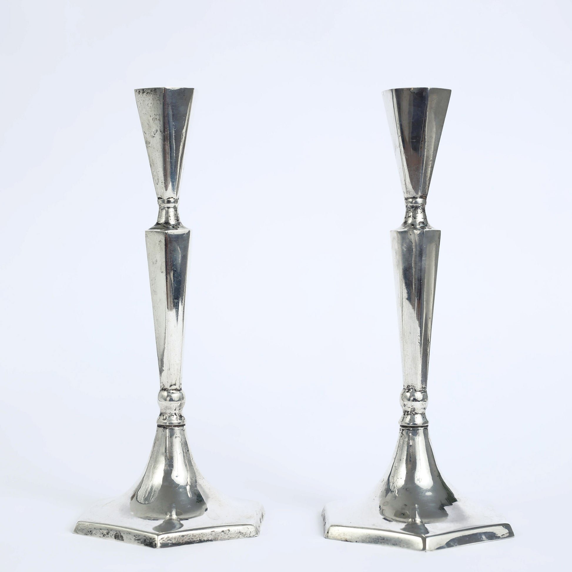 Shabbat candleholders, made of pure silver, in Israel. The base of each one is shaped like a Magen David (Star of David), a symbol associated with the Judaism throughout history.