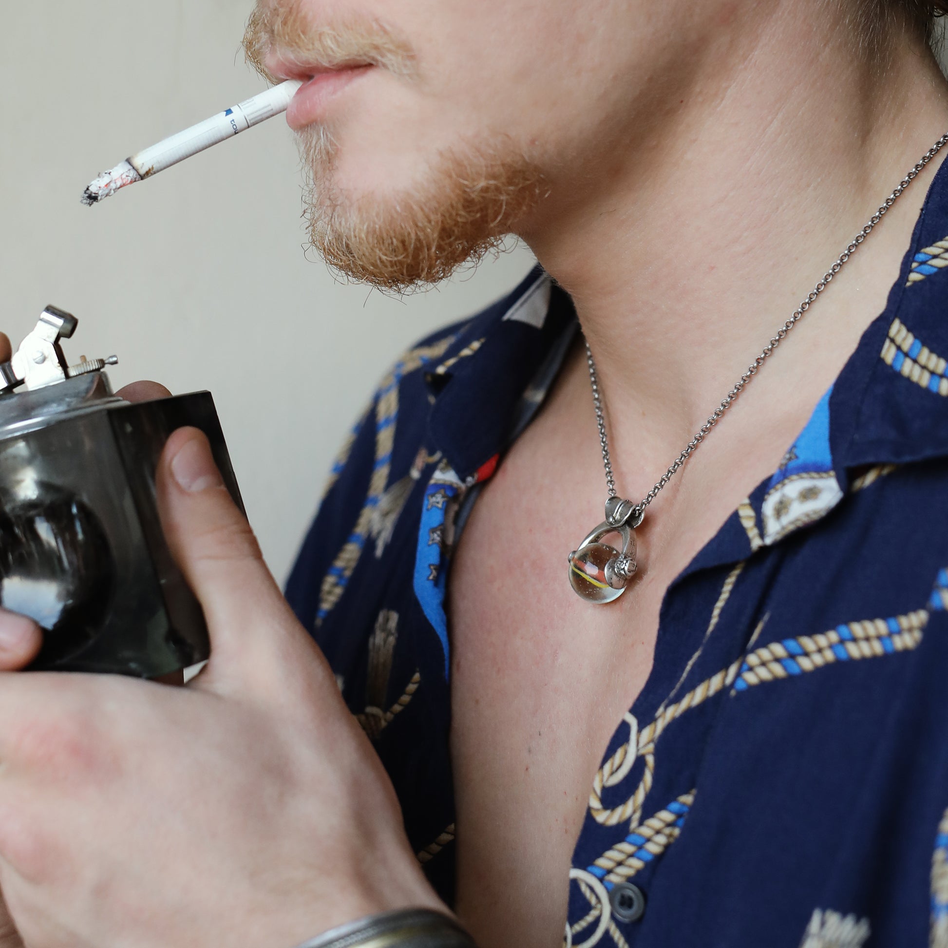 This silver pendant, made in Israel, walks us down memory lane to the famous children game of marbles. It is a handmade piece, notable for the contrast between the bold colors of the marble and the silver.
