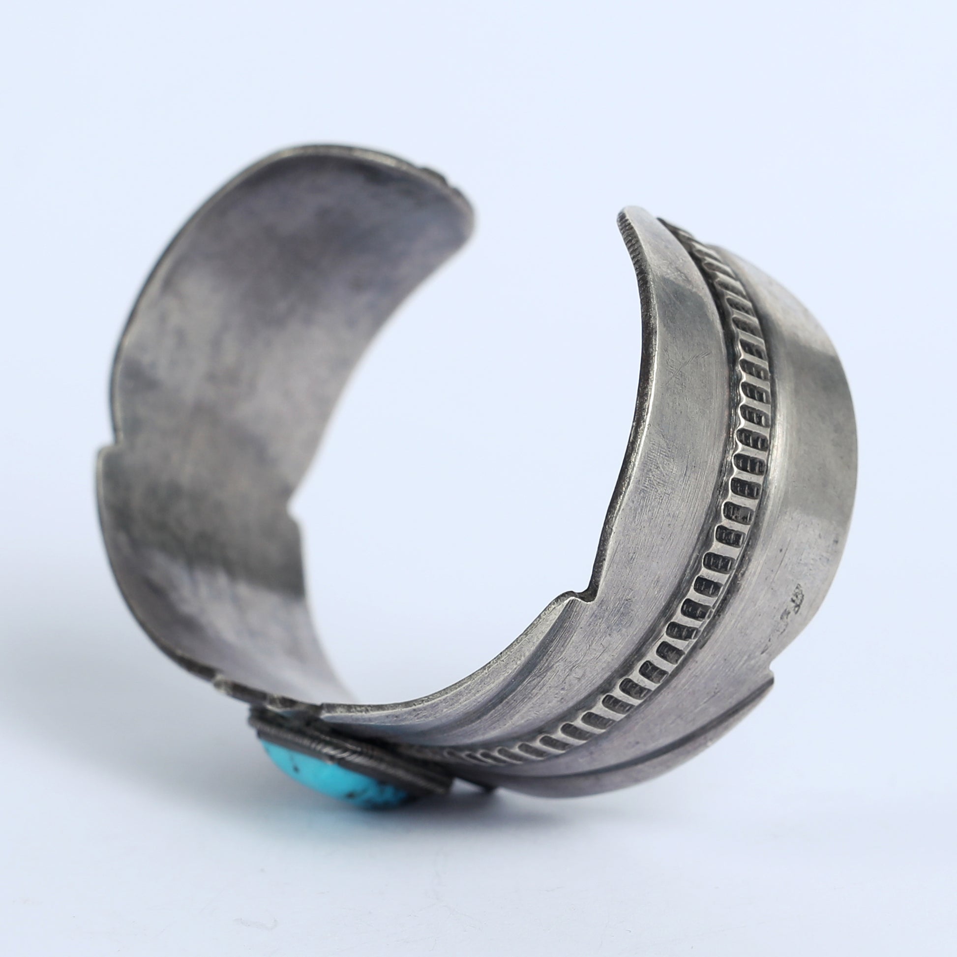 In this silver bracelet, we see an embodiment of Navajo beauty. In the culture of the Navajo tribe, one of the most well- known tribes of Native America, turquoise stone is used in jewelry to attract health and protection. There is a tribal costume is to give such jewelry in an important moments in one's life: birth, initiation rituals, and marriage. In many other cultures, turquoise signifies the connection between heaven and earth.