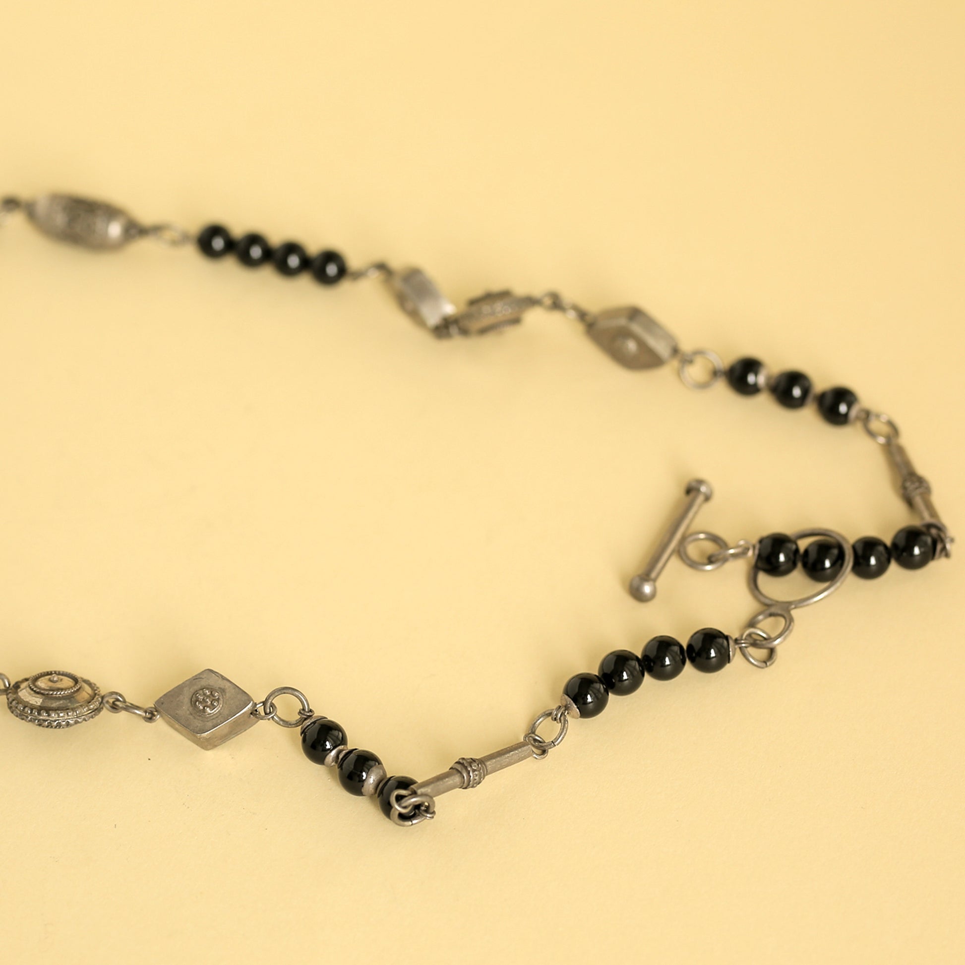 This jewel is a handmade piece, made in Israel, and is a combination of Onyx stone with silver beads. It can be put both as a belly ring or a necklace due to its length. The combination of silver and onyx is known in many cultures worldwide, and brings together feminine and masculine energies.