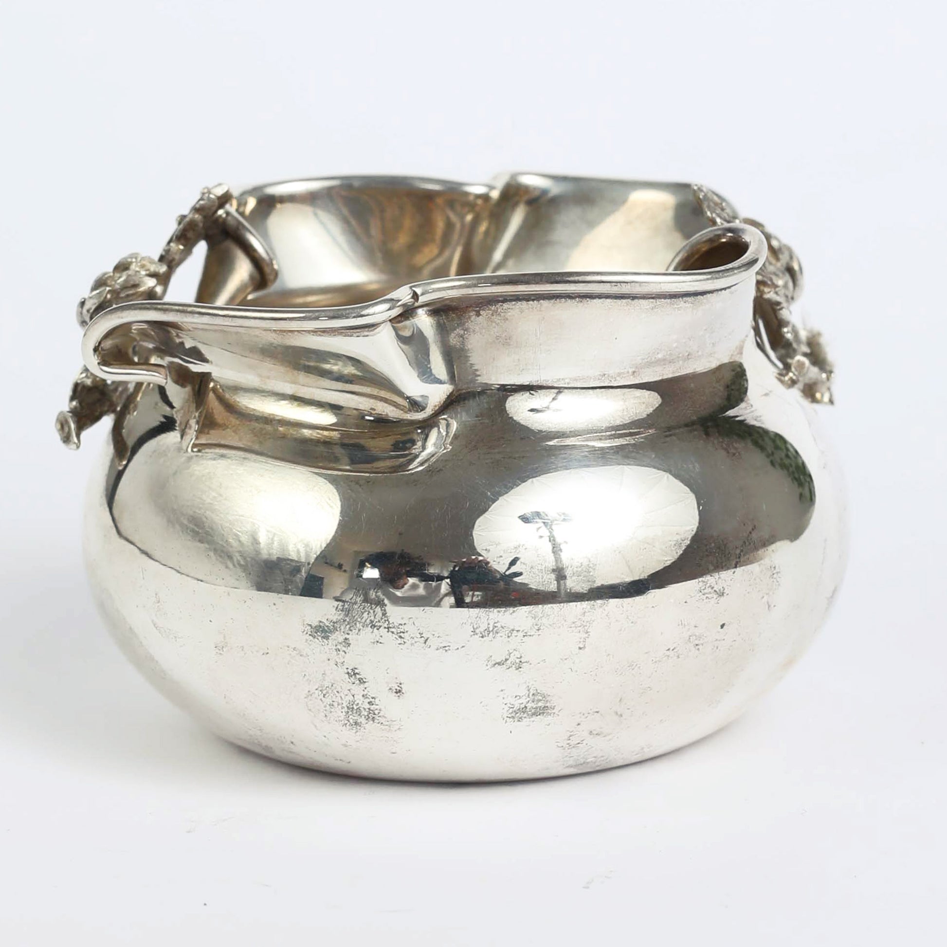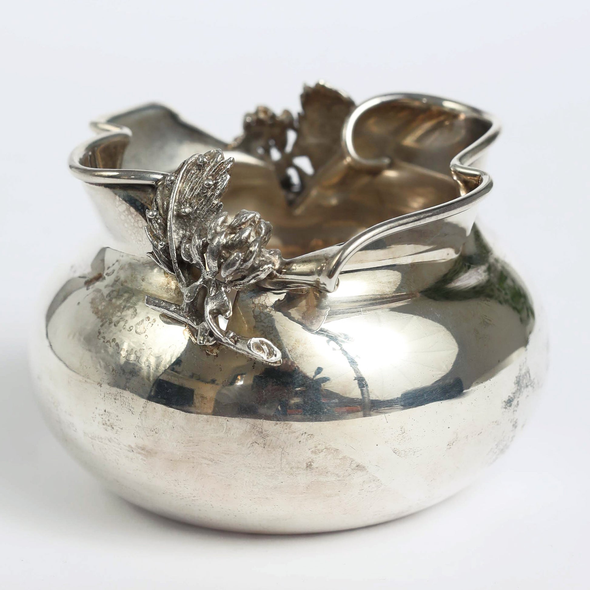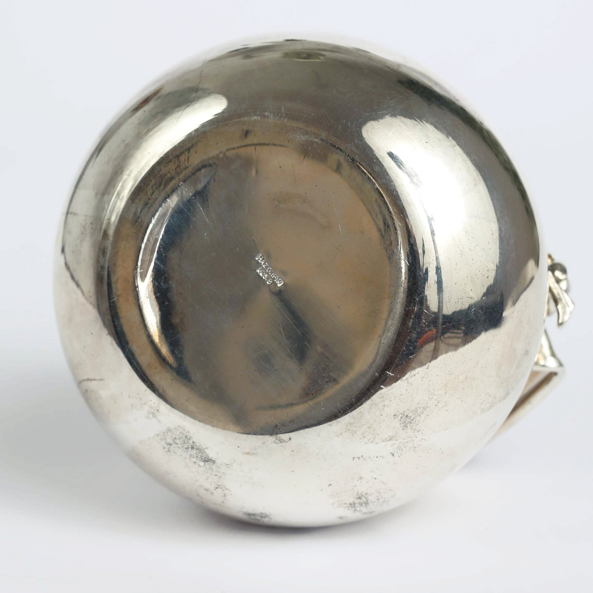 A vessel in the shape of a pomgranate made by the "Hazorfim", an Israeli silversmith family business, established in Israel in the 1950's. The piece has the original signature on the bottom. Pomegranates play an important role as a symbol of righteousness in Judaism, as they supposedly contain 613 seeds, which correspond to the 613 commandments of the Torah.