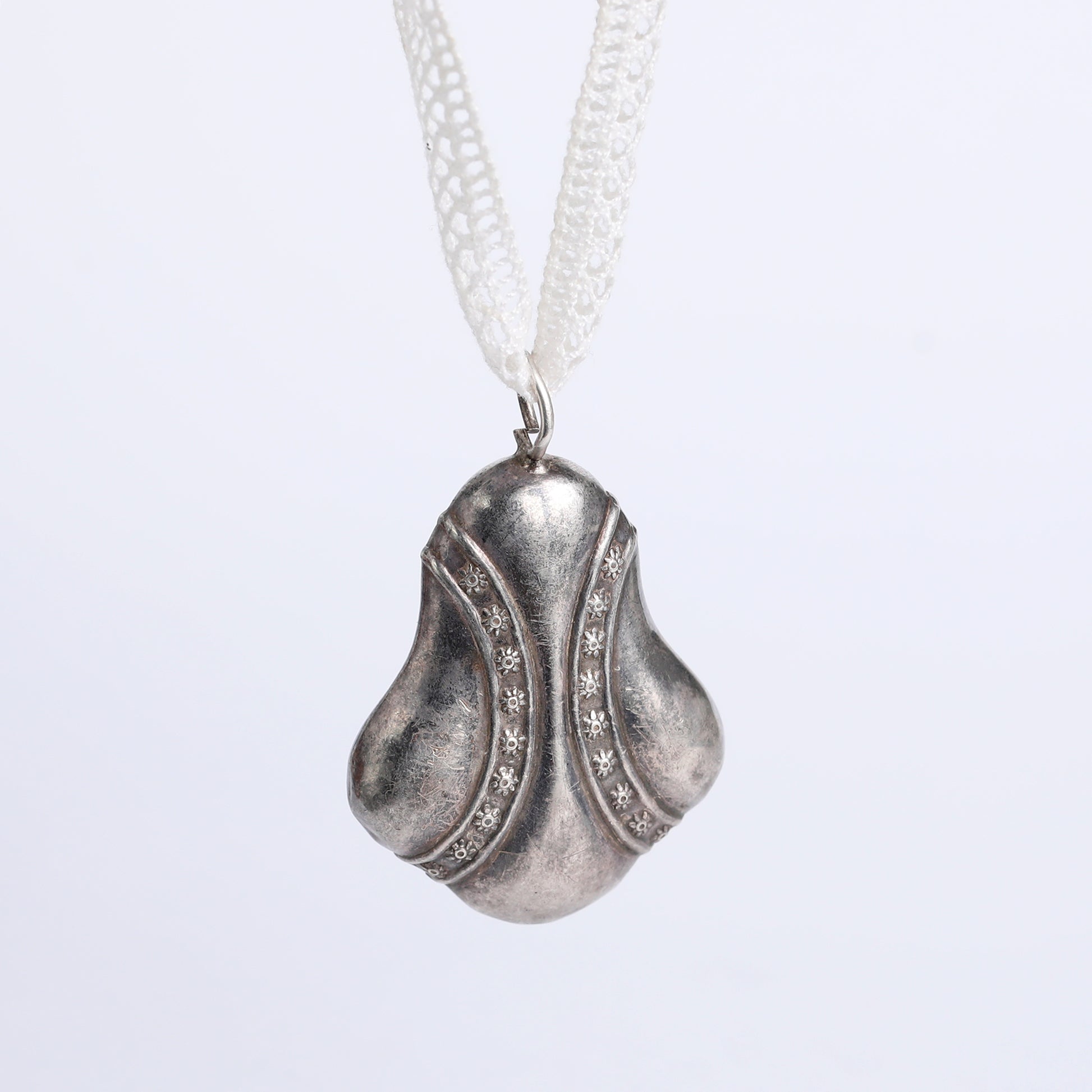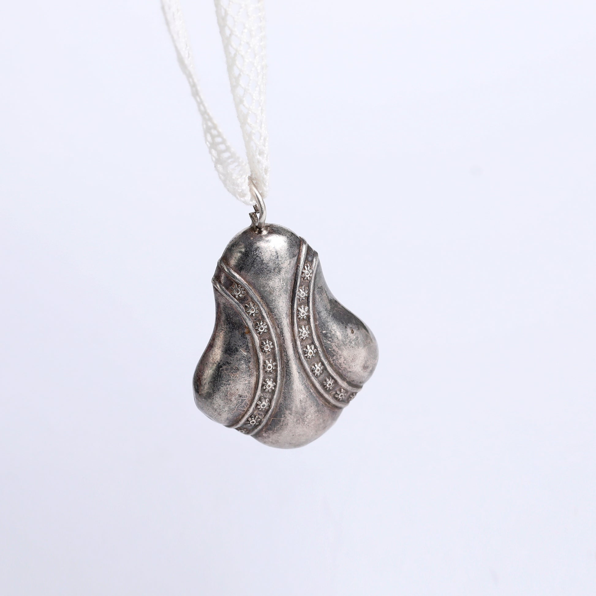 Presenting a one-of-a-kind victorian bell pendant, expertly crafted from pure silver using an age-old hammering technique. This unique piece carries a rich tradition, once cherished by pregnant women who used its gentle sound to soothe their unborn babies.