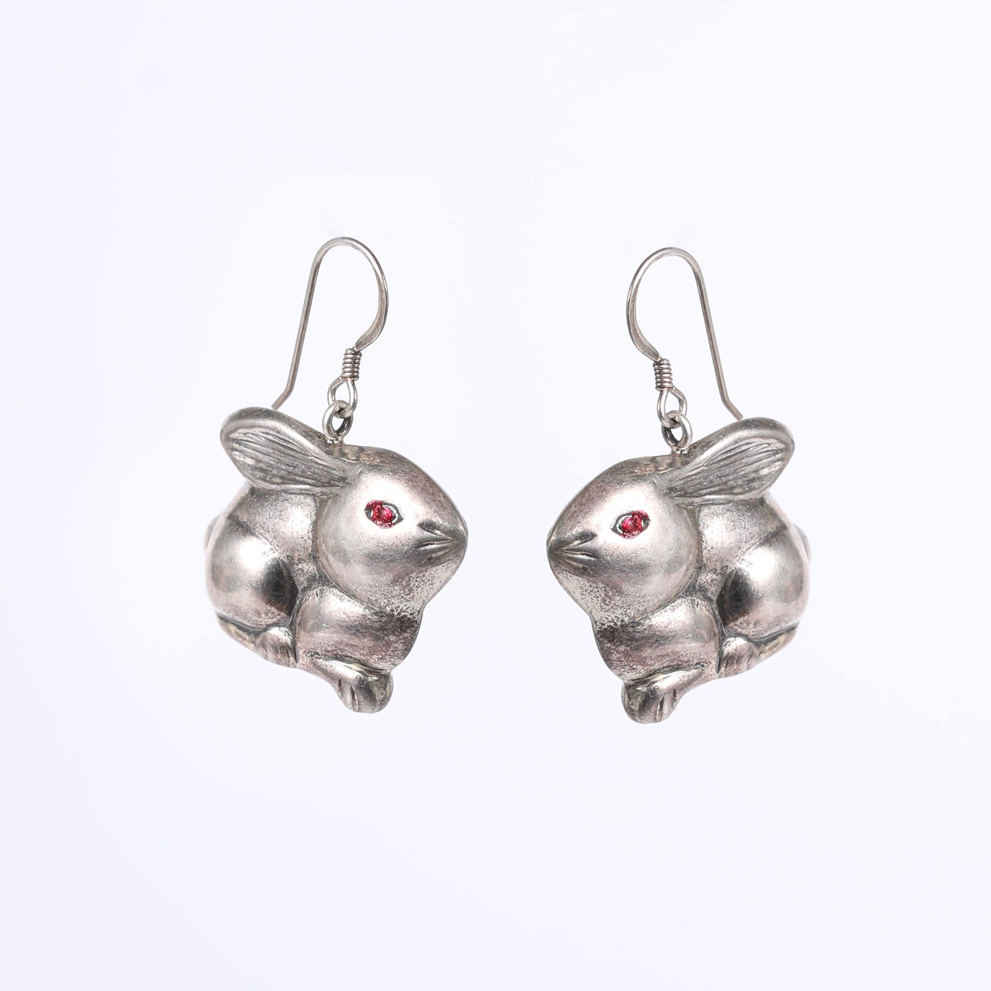 Rabbits silver 925 earring with Ruby Stone on the eyes
