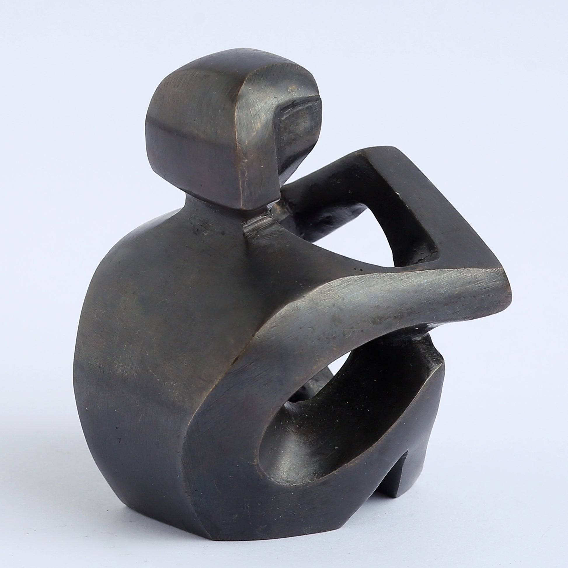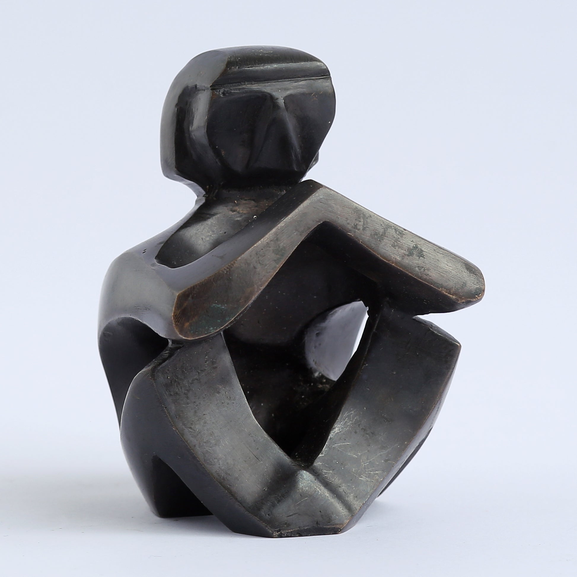 A statue made of bronze, in lost wax casting technique, representing a human figure expressing self love and acceptance with their hands (Mudra).