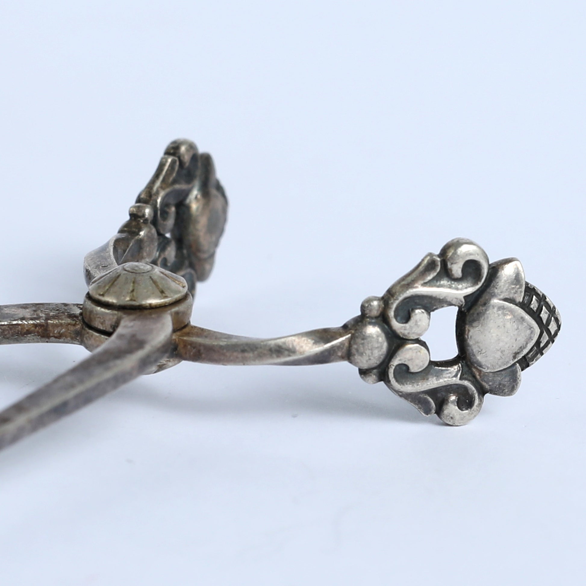 These tongs were used originally as sugar tongs, adding sugar cubes during teatime. Made of pure Sterling silver, this pair has an original sterling silver stamp ("STERLING DENMARK"), with marguerite daisy decoration in their end, a common flowers in Denmark.
