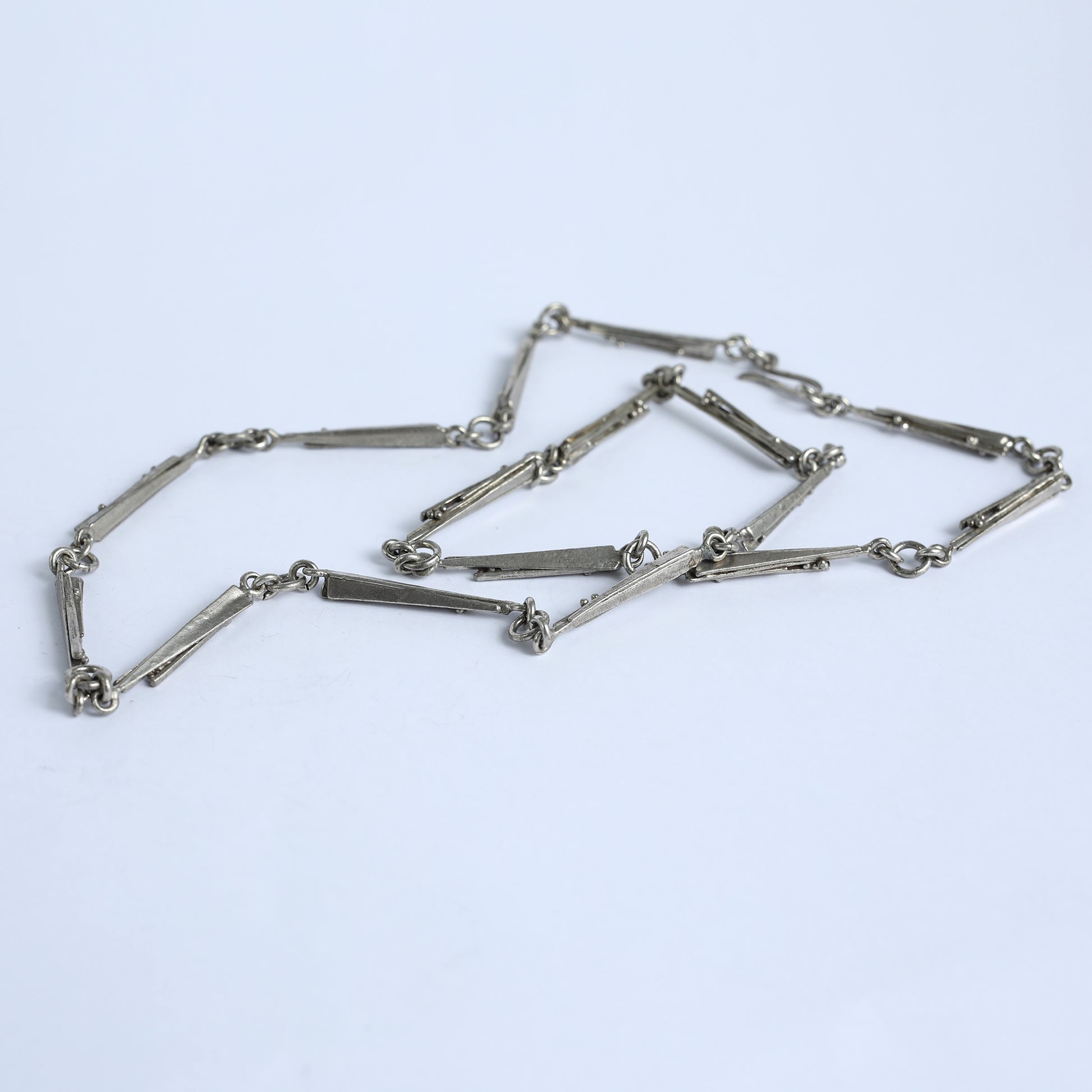 Pure silver torches neckalce, made in Israel, designed by the couple Rachel and Eli Gera. Both artists of multiple disciplines, the brutalist chains balance softness and fierceness. Rachel Gera. Born in Israel to a Polish family, and is one of the “Teheran children”, a group of Polish children sent to Teheran (Iran) during the WWII. A Bezalel Academy of Art and Design graduate, her rich personal history influenced her work and style.