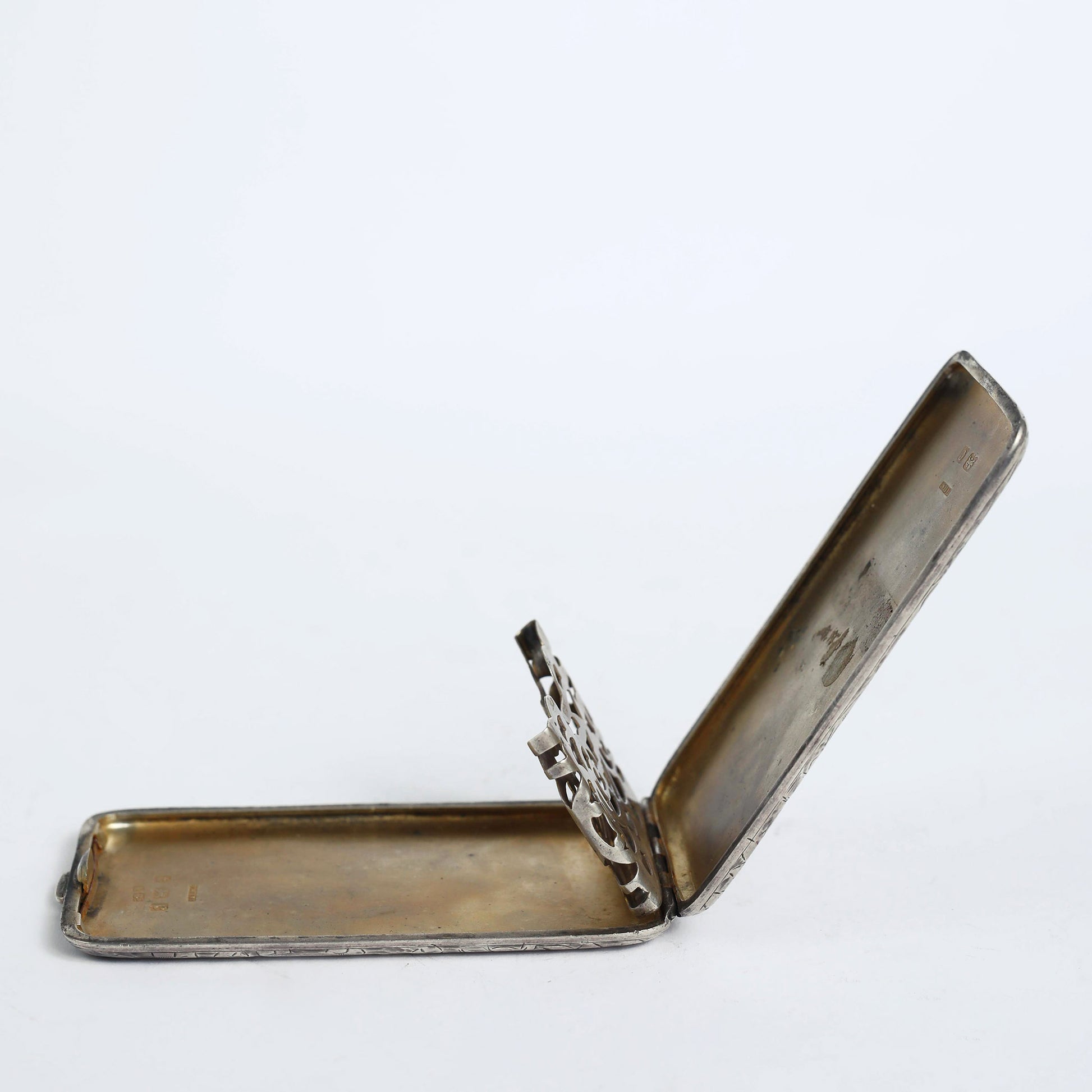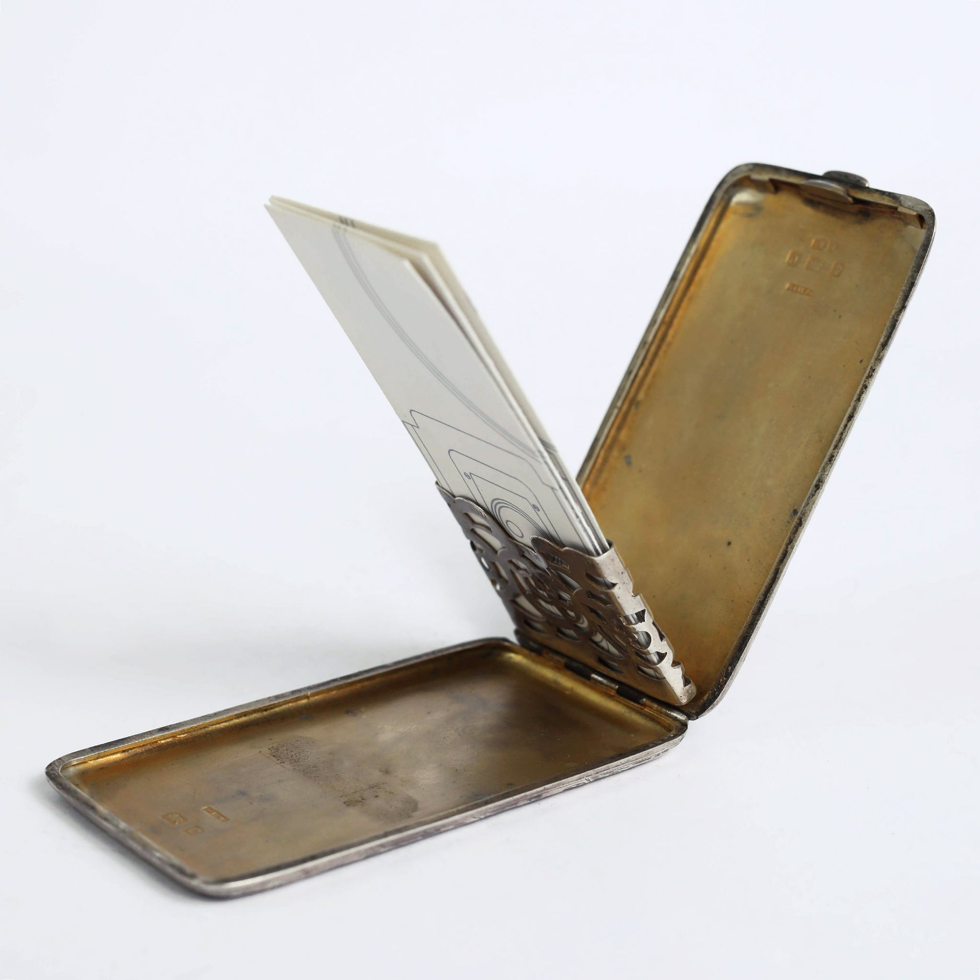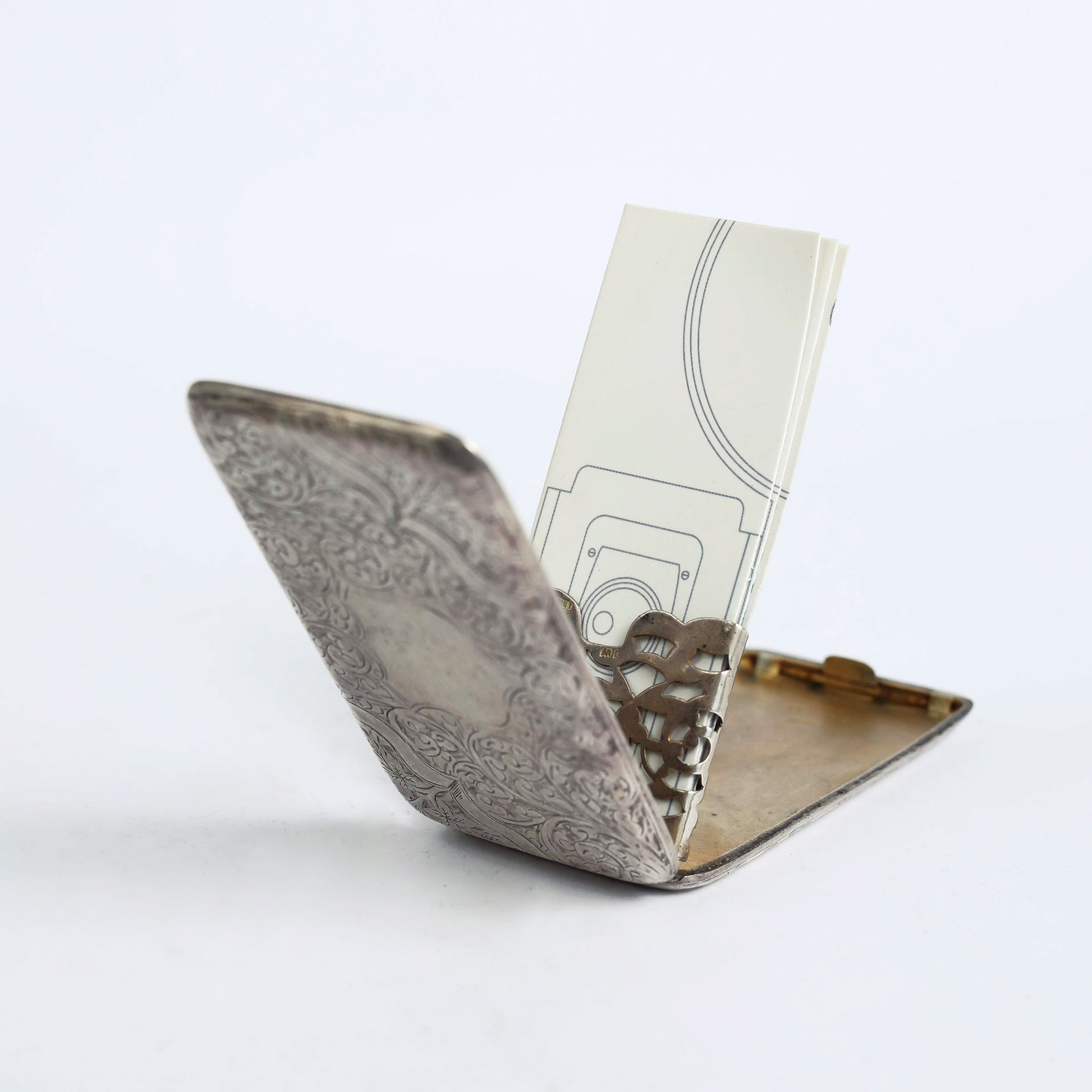 A Victorian designed visiting card, made of silver in the late 1800', with the original manufacture signature. On the inside are carved the letter "C", the word "patent" and a ship's anchor.