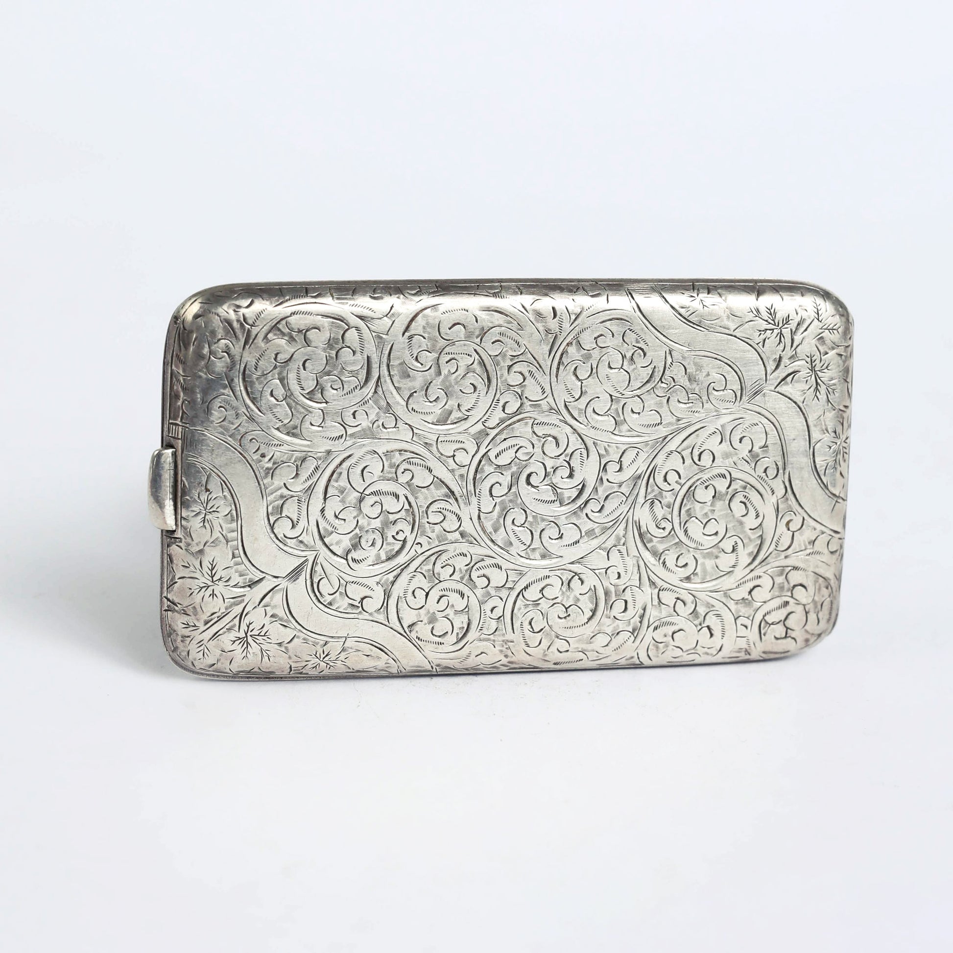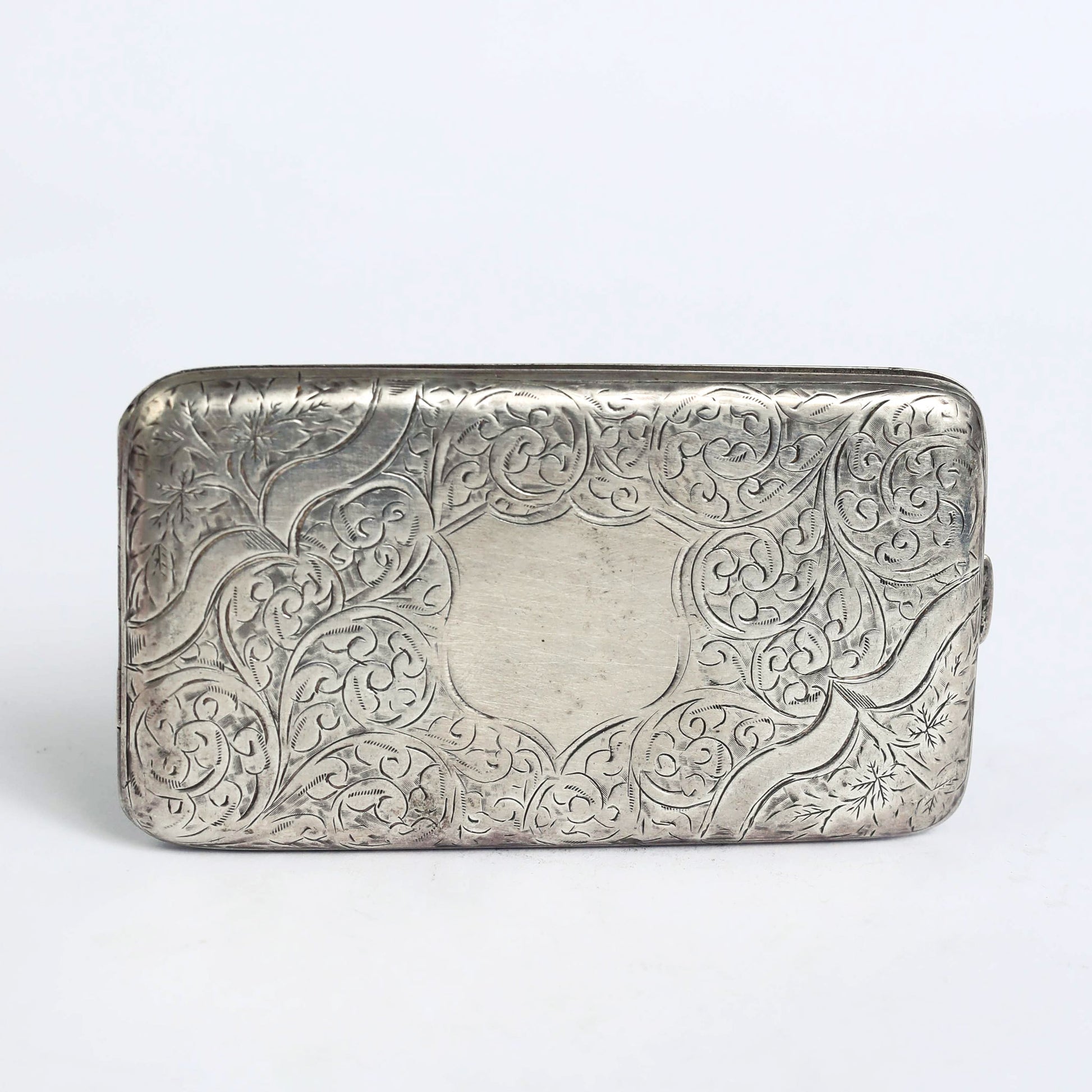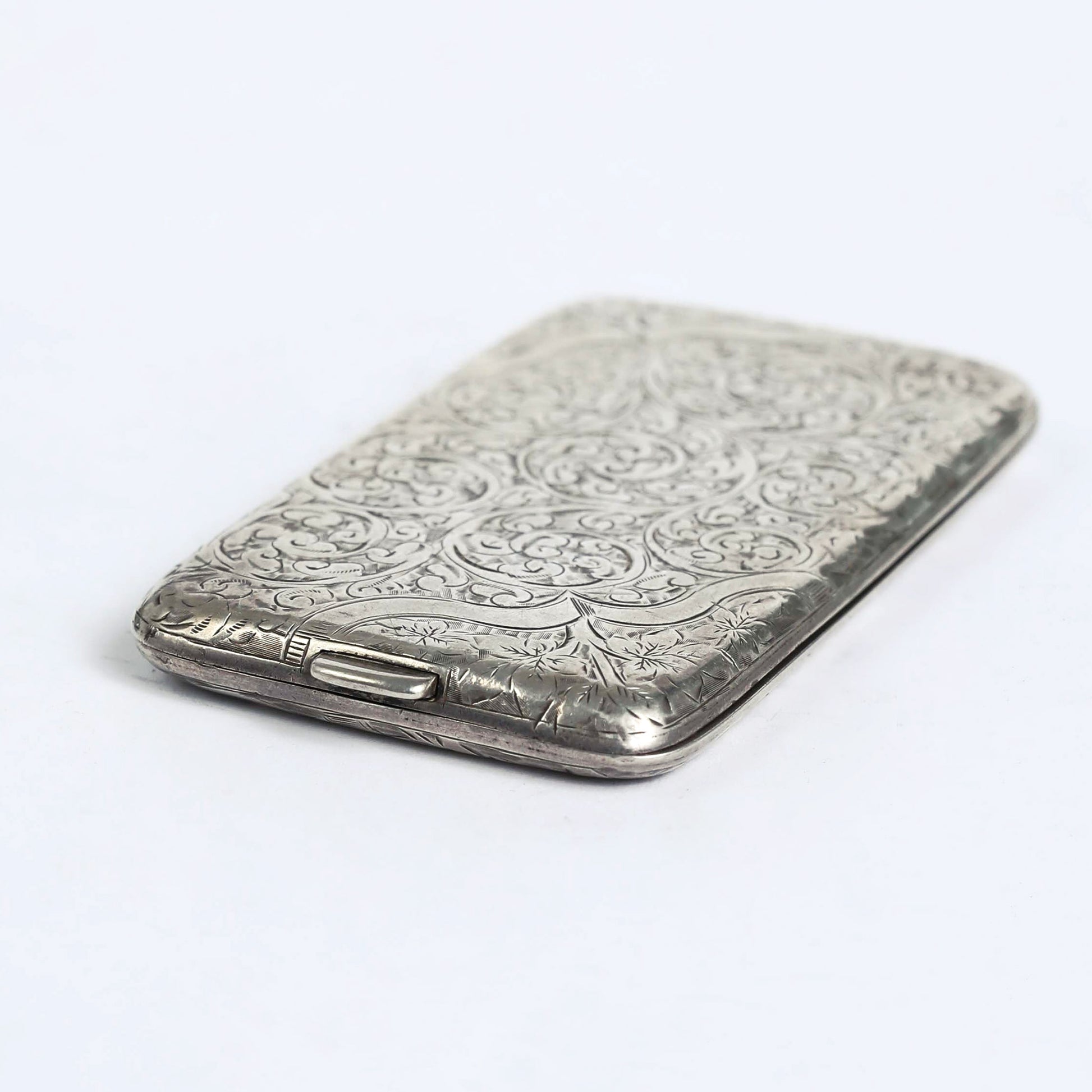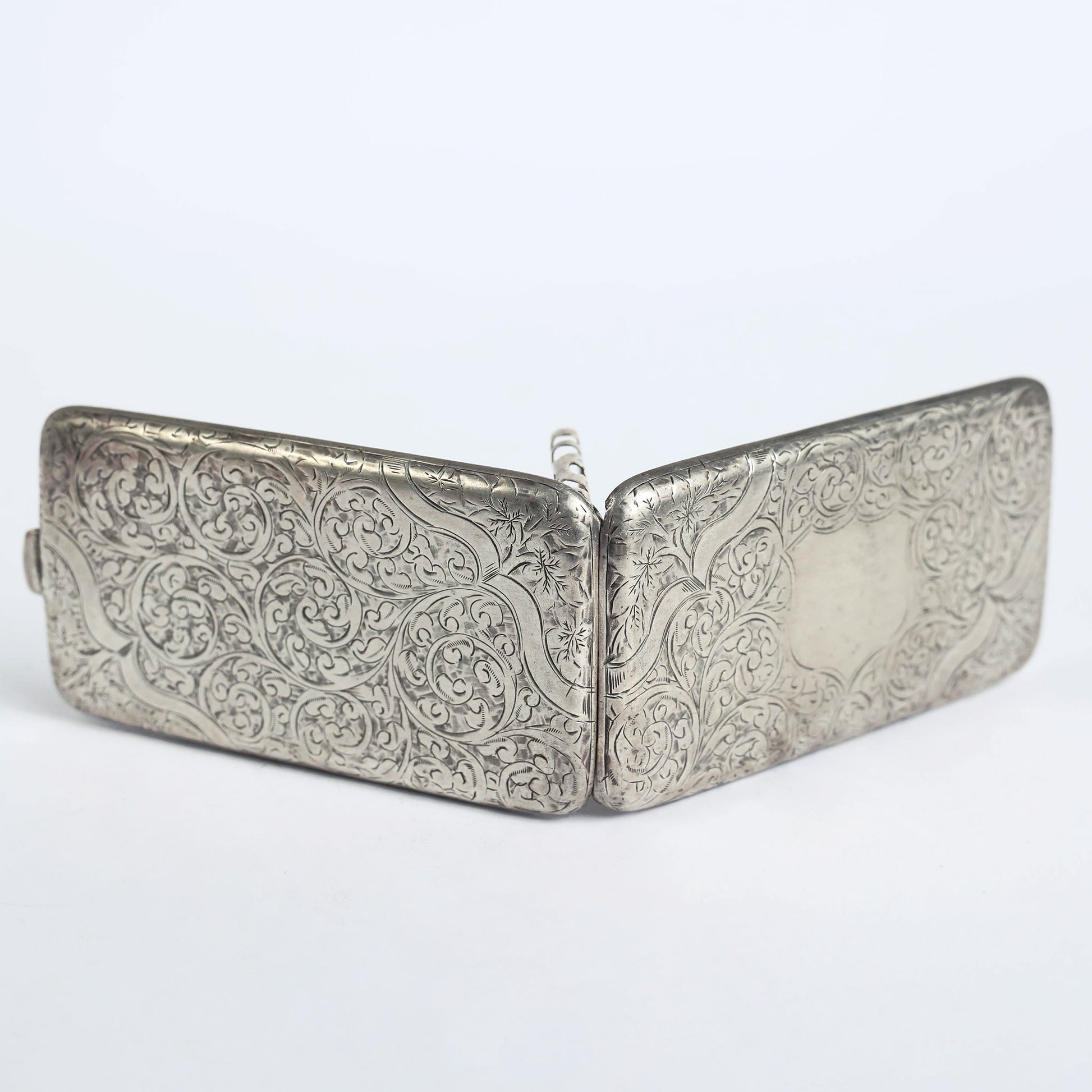 A Victorian designed visiting card, made of silver in the late 1800', with the original manufacture signature. On the inside are carved the letter "C", the word "patent" and a ship's anchor.