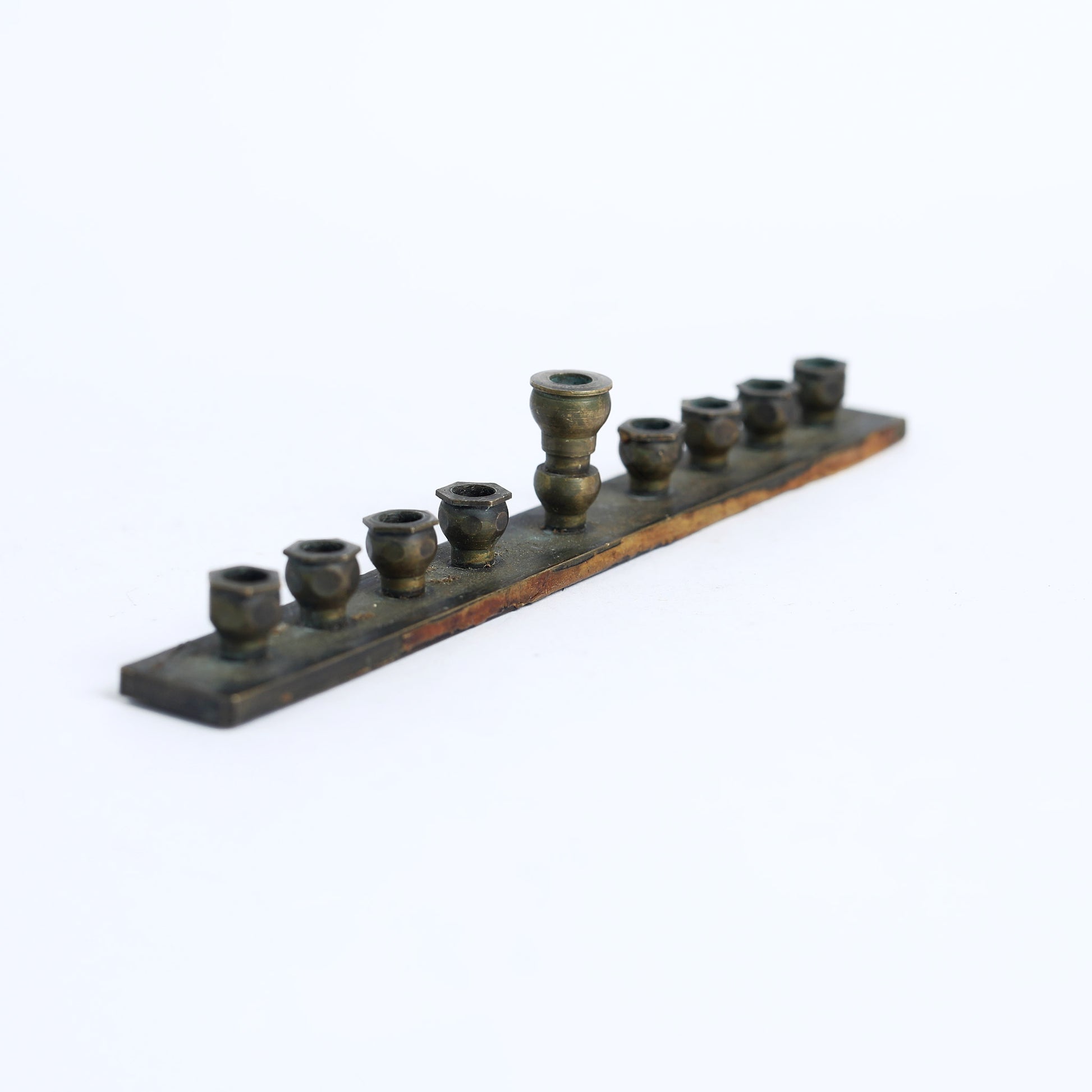 "Ort" are initials in Russian meaning "Association for the Promotion of Skilled Trades". It was established in the late 1800 and offered Jewish youth throughout the world to gain practical skills in diverse crafts. This is a menorah or hannukiah made by a young participant in the program. Menorahs are a Jewish candlebrum used during the festivities of Hannukah and are a symbolic representation of the Temple of Jerusalem. This specific one has an original certificate, mentioning it was made in Geneva, Switzerland.